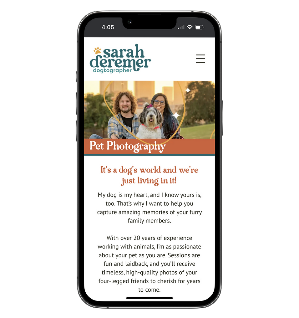 When Sarah finally decided to refresh her brand and website, she turned to NML for support. NML helped her craft a new logo, visual identity, and a beautifully designed Wix website tailored to pet services, branding that felt loving, playful, trustworthy, experienced, and creative. Throughout the process, they offered thoughtful guidance, understood her creative sensibilities, and ensured the final result aligned with her vision and the needs of her pet-photography business. The transformation gave her the confidence and professional polish she’d been missing, boosting her credibility as a small business owner.